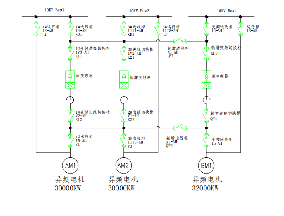 主电机:1#高炉鼓风机10kV/32000kW、2#高炉鼓风机10kV/30000kW、备用高炉鼓风机10kV/30000kW
