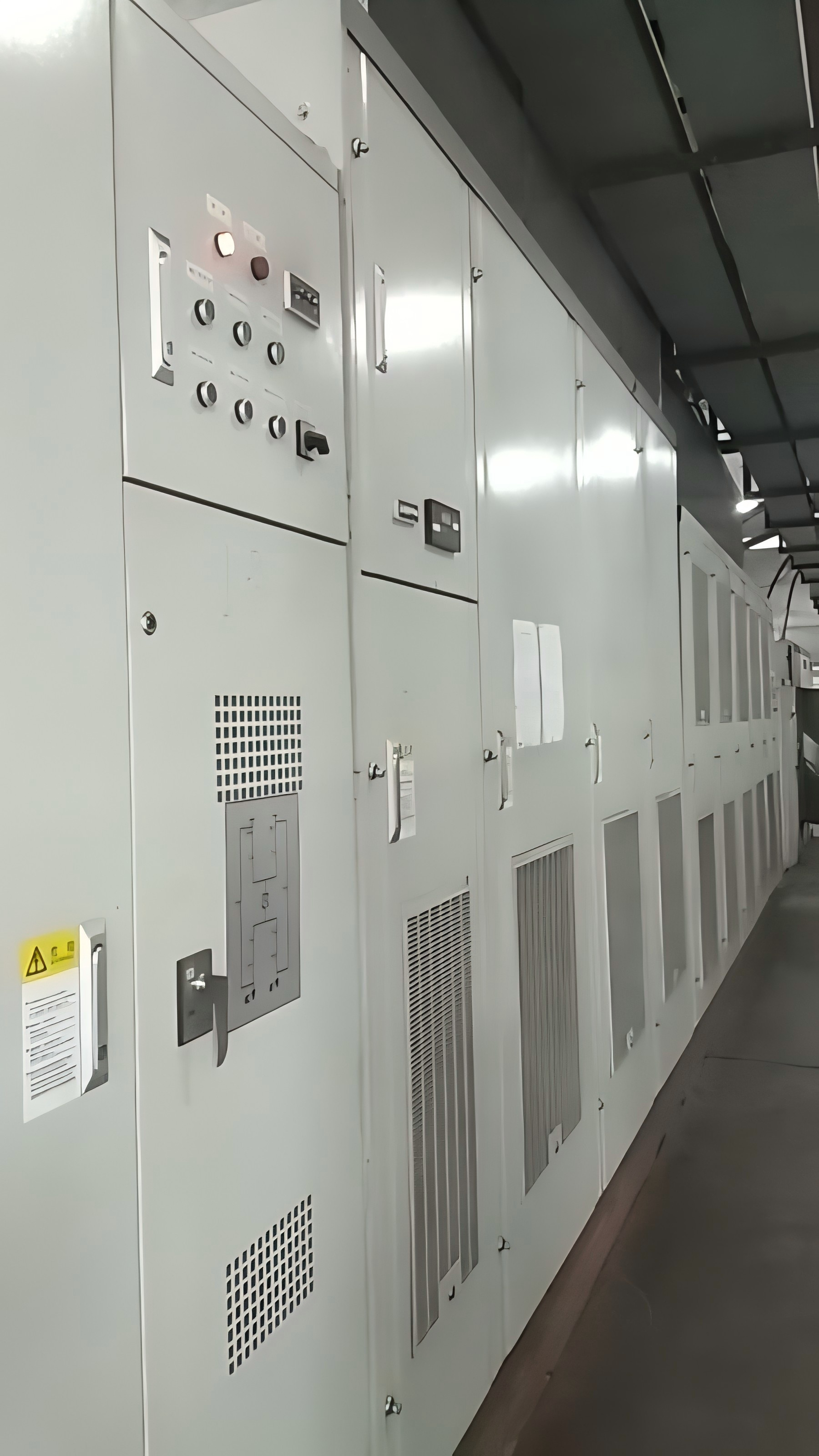 采用的特有技术:1、功率单元10级串联结构(容错力提升200%)2、散热系统:柜顶柜底双冗余风机(N+2配置) 3、控制冗余:控制机双机热备(切换时间<50ms) 4、整流变压器:容量放大1.5倍(耐受瞬时过载200%) 5、涌流抑制技术:在变频器上电时避免移相变压器充磁对电网造成影响。